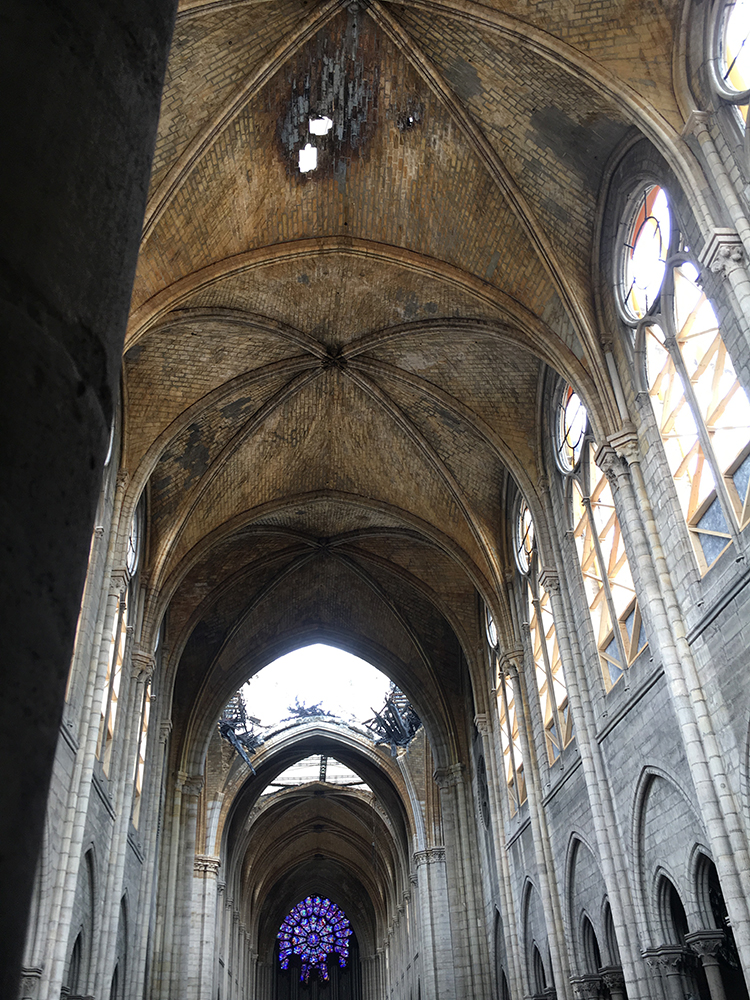 Les voûtes ont fortement souffert de l’incendie : chute des bois, températures élevées, action de l’eau…